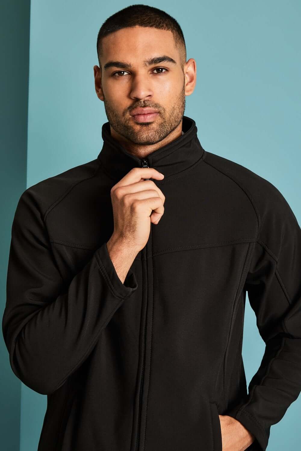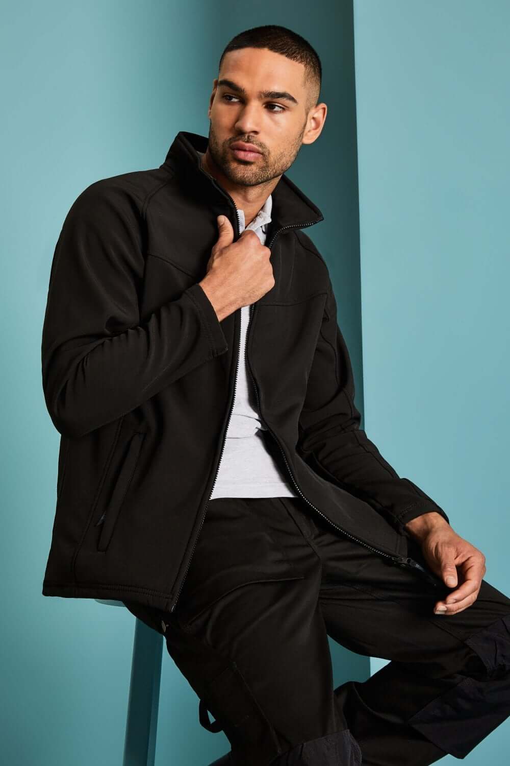 Material: Warm backed woven stretch softshell, Durable water repellent finish,Wind resistant, Super soft handle, Quick drying fabric.