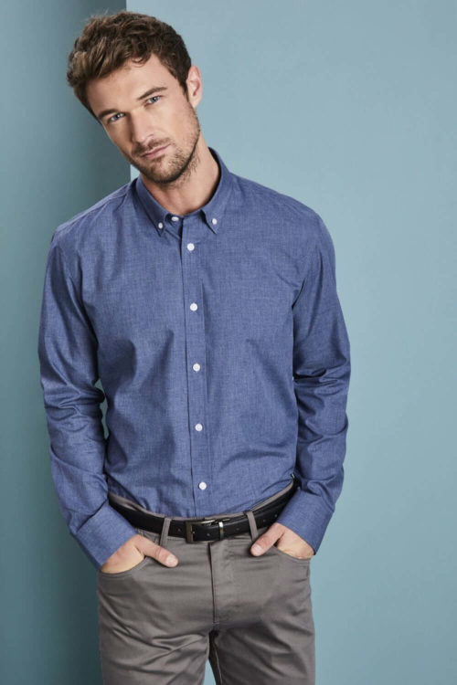 Premium kangast piloodisärk: pikkade varrukatega, kahe klapp-rinnatasku ja pagunitega, eest nööbitav,