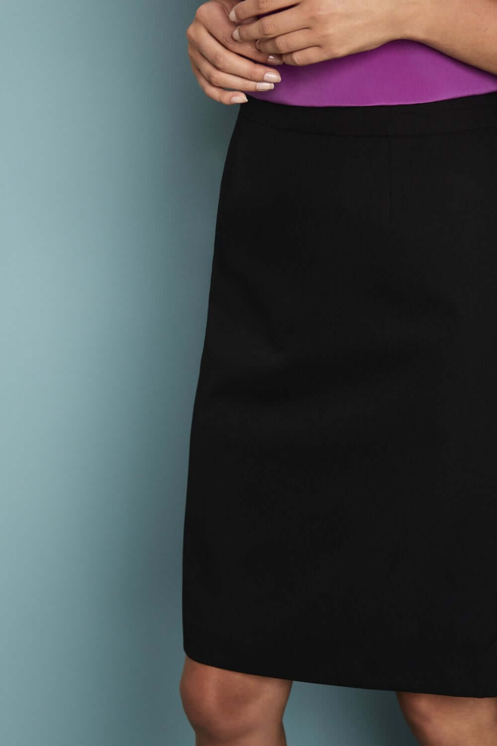 Sirgelõikeline naiste seelik, kõrgendatud ülaosaga, tagant lukuga, voodriga.