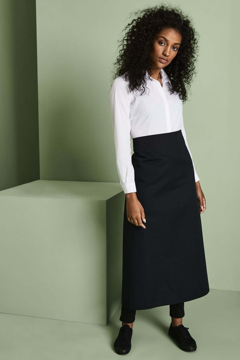 Ühevärviline pikk põll ilma taskuteta, sobib nii kokkadele, kelneritele kui teenindajatele! Esinduslik pikk põll klienditeenindajatele.