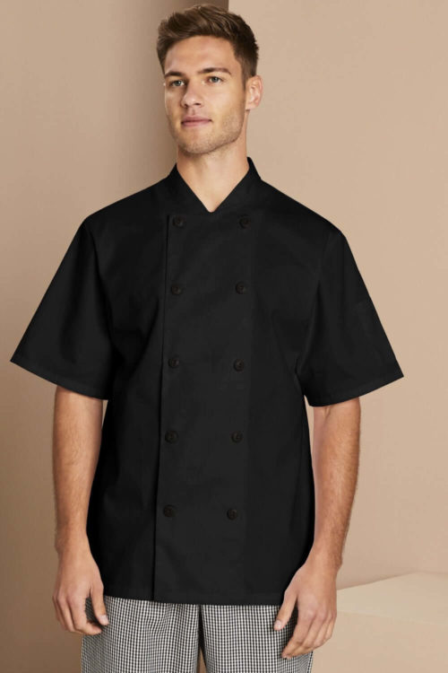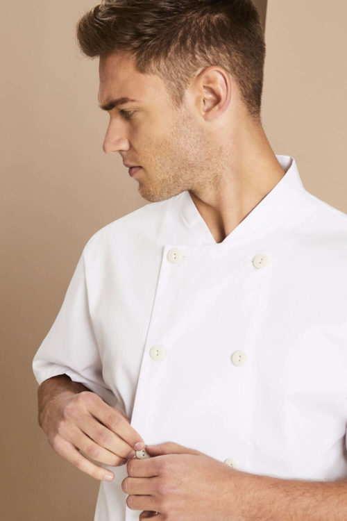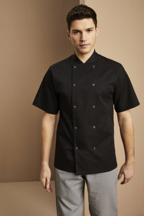 Kuuma köögi kokajakk, nööpide ja lühikeste varrukatega
