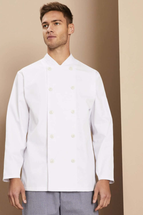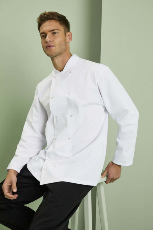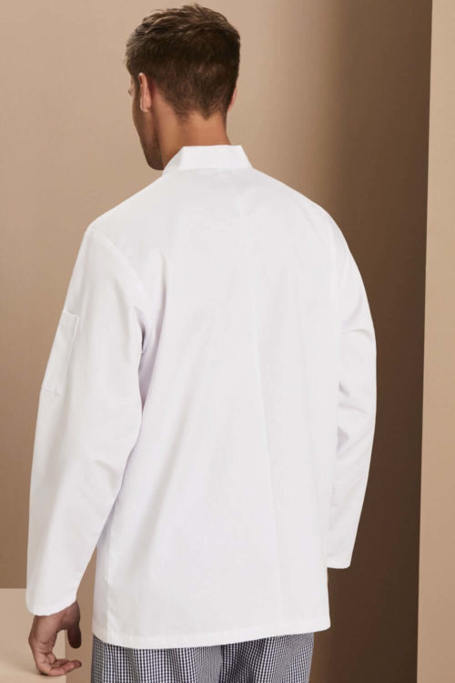 Kuuma köögi kokajakk, nööpide ja pikkade varrukatega