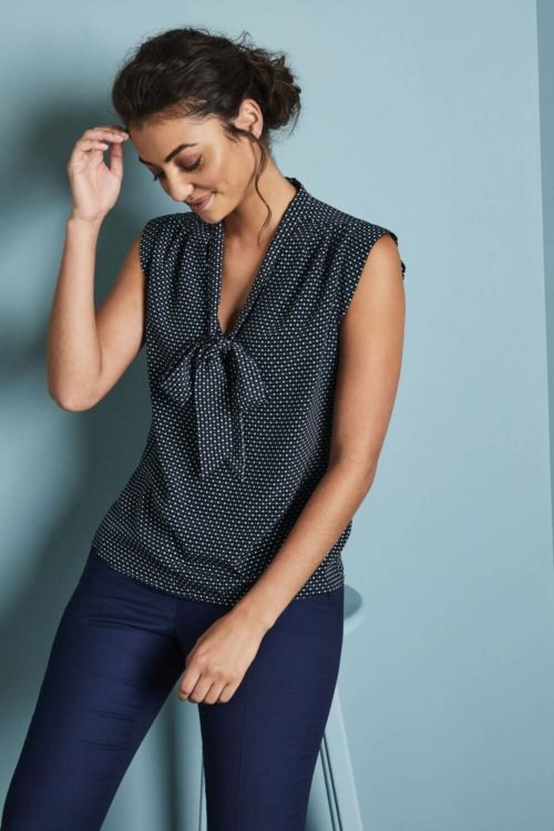 Seotava kaeluse ja linnusilma mustriga pluus